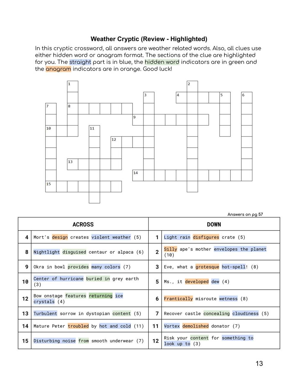 Every puzzle has an answer key along with a HINT key to help you figure out what kind of wordplay to use.
